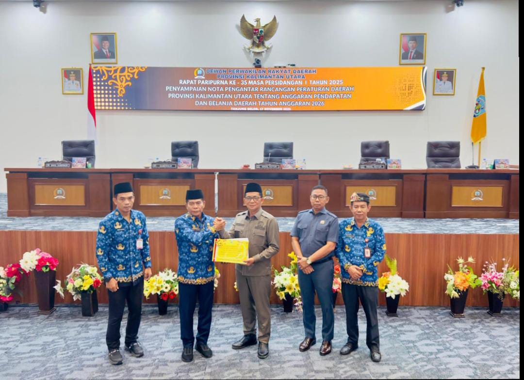 DPNTimes.com, Tanjung Selor – Dewan Perwakilan Rakyat Daerah (DPRD) Provinsi Kalimantan Utara (Kaltara) resmi menerima Nota Pengantar Rancangan Peraturan Daerah (Raperda) tentang Anggaran Pendapatan dan Belanja Daerah (APBD) Tahun Anggaran 2026 dari Pemerintah Provinsi (Pemprov) Kaltara. Penyampaian nota pengantar tersebut berlangsung dalam Rapat Paripurna ke-35, Senin (17/11/2025).