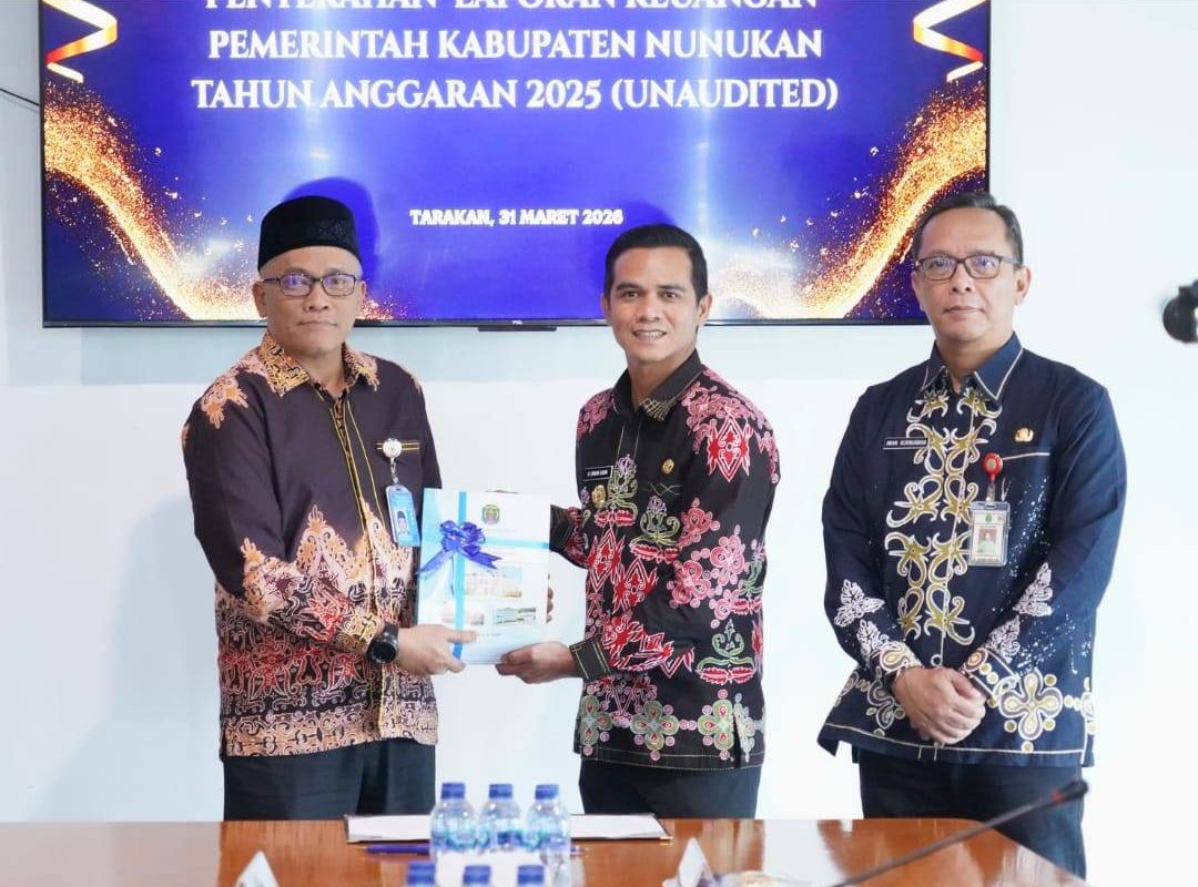 DPNTimes.com, TARAKAN– Pemerintah Kabupaten Nunukan secara resmi menyerahkan Laporan Keuangan Pemerintah Daerah (LKPD) Kabupaten Nunukan Tahun Anggaran 2025 kepada Badan Pemeriksa Keuangan (BPK) RI Perwakilan Provinsi Kalimantan Utara sebagai bentuk pertanggungjawaban atas pelaksanaan Anggaran Pendapatan dan Belanja Daerah (APBD). (31/03/26)