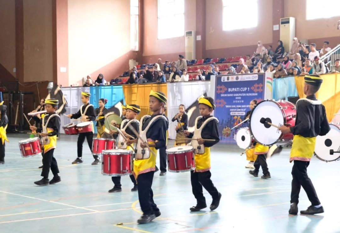 Dengan menggunakan berbagai instrumen seperti bass drum, symbal, marching bell, pianika, dan quarto, Gema Swara Paguntaka membawakan rangkaian lagu Ayo Mama, Ayam Den Lapeh, dan Manuk Dadali. Penampilan tersebut langsung disambut tepuk tangan meriah penonton yang memadati Gedung Olahraga (GOR) Dwikora Sungai Sembilan Nunukan, tempat berlangsungnya Pertandingan Drum Band Bupati Cup I pada Minggu, 2 Oktober 2025.